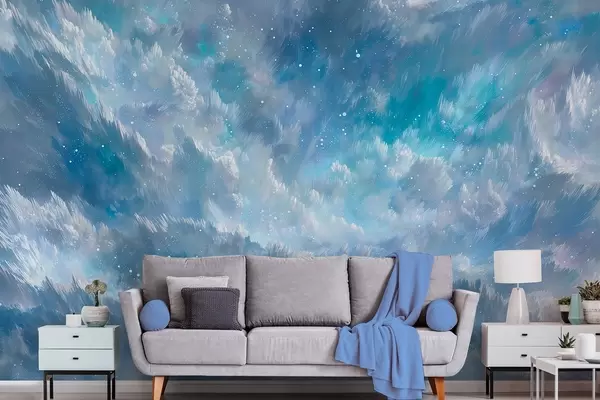 Фотошпалери Небесні абстрактні хмари в прохолодній пастельній палітрі w09459