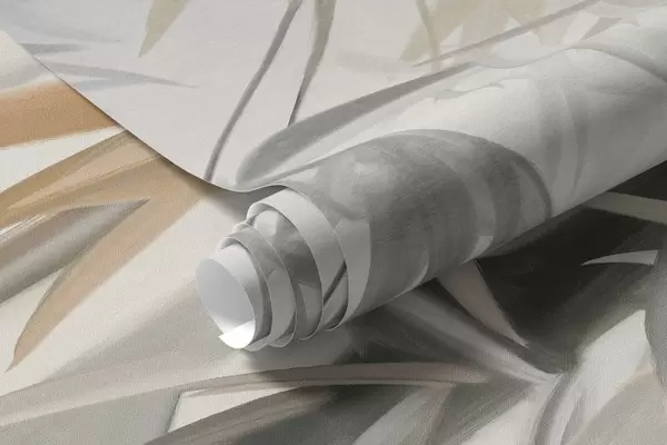 Фотошпалери Текстуровані бамбукові стебла та листя в м'якій, приглушеній кольоровій гамі сірого, білого та кремового кольорів, мінімалістична композиція w09485