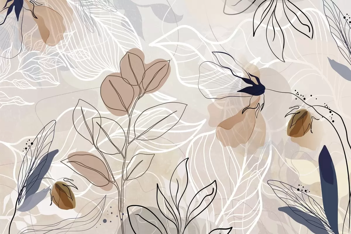 Фотошпалери Бежевий абстрактний фон з листям і квітами, сучасний, мінімалістичний, органічні форми, ботанічний принт w09487
