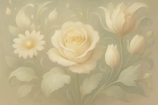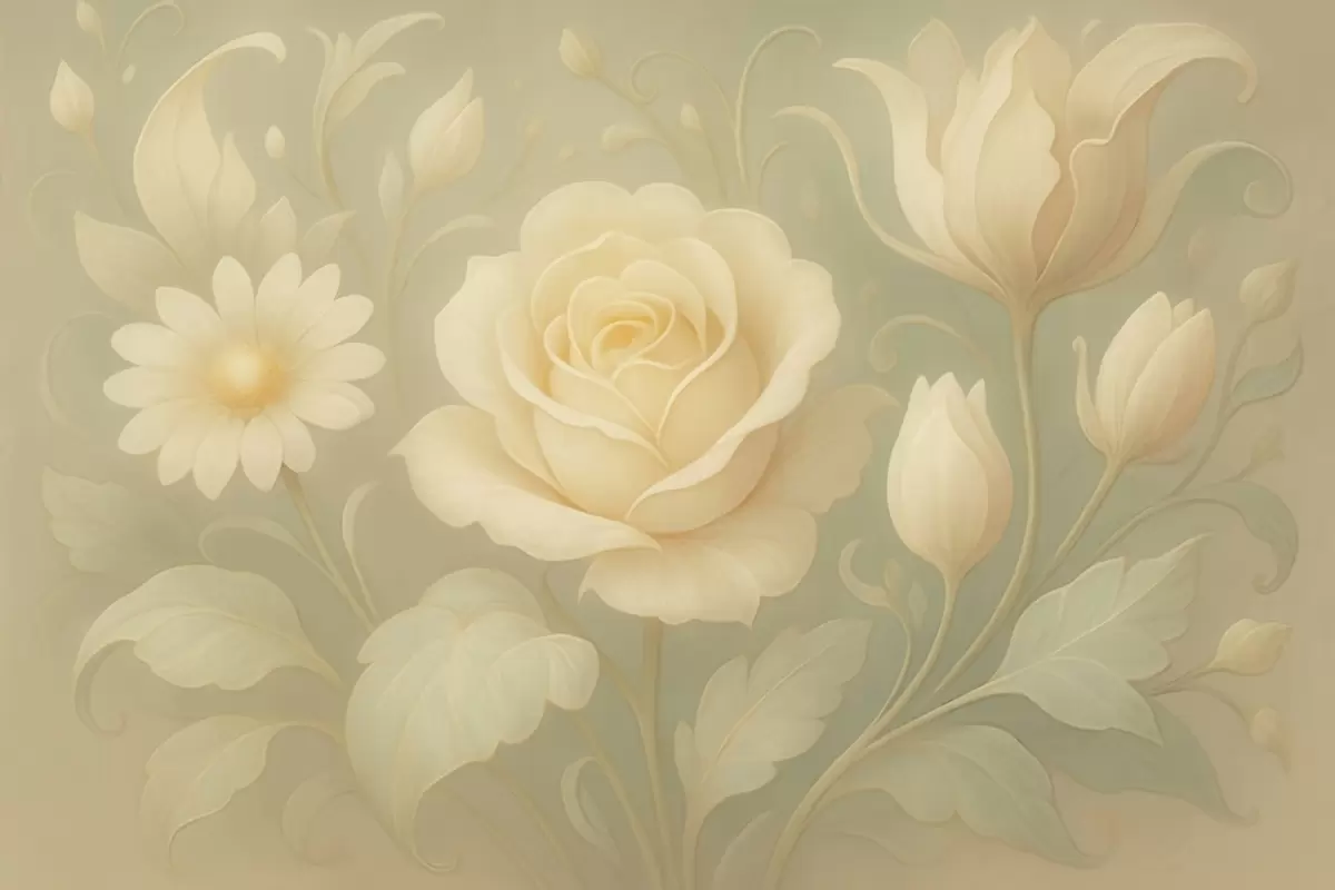 Фотошпалери Делікатна вінтажна композиція з бежевими трояндами на світло-зеленому тлі w09499