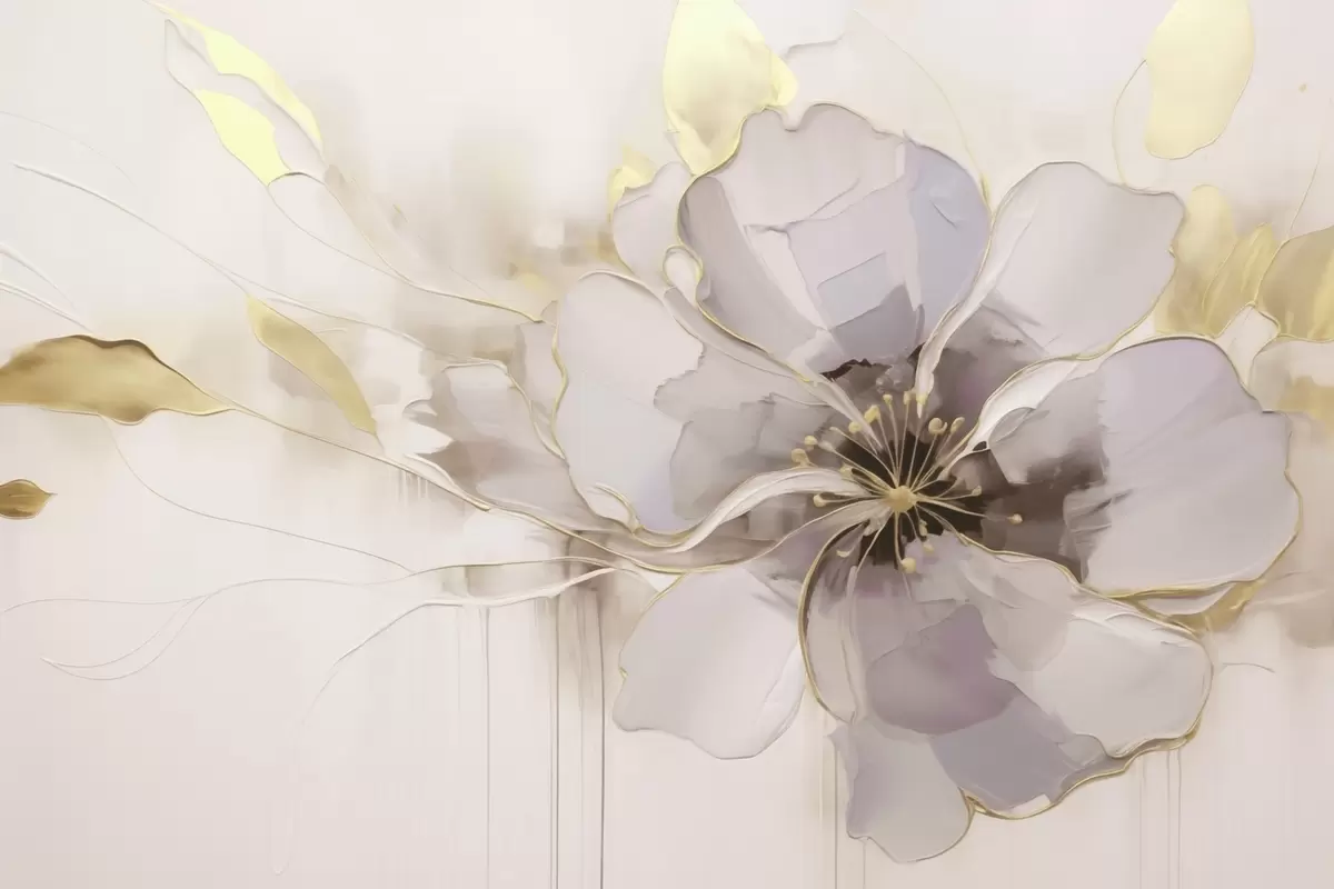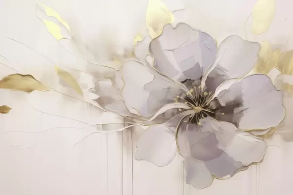 Фотошпалери Блакитна квітка з жовтими акцентами в абстрактному стилі мазка пензлем w09505