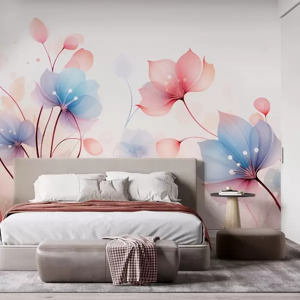 Фотошпалери Ніжні рожево-блакитні квіти — повітряна флора на білому акварельному тлі w09507