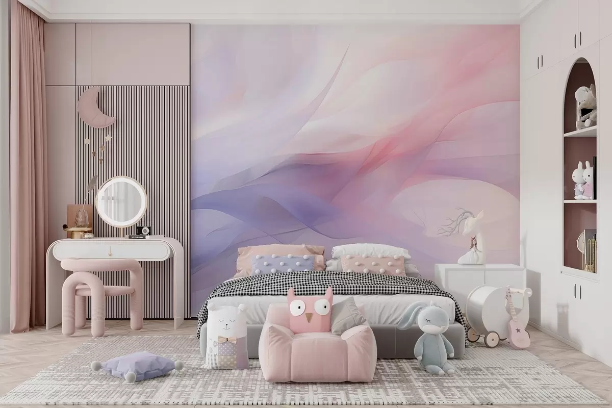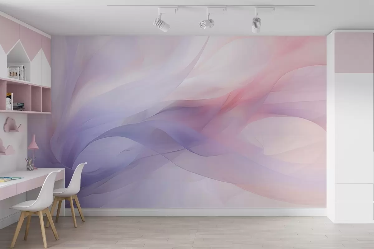 Фотошпалери М'які абстрактні хвилі в блакитних і рожевих тонах w09508