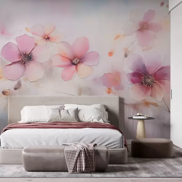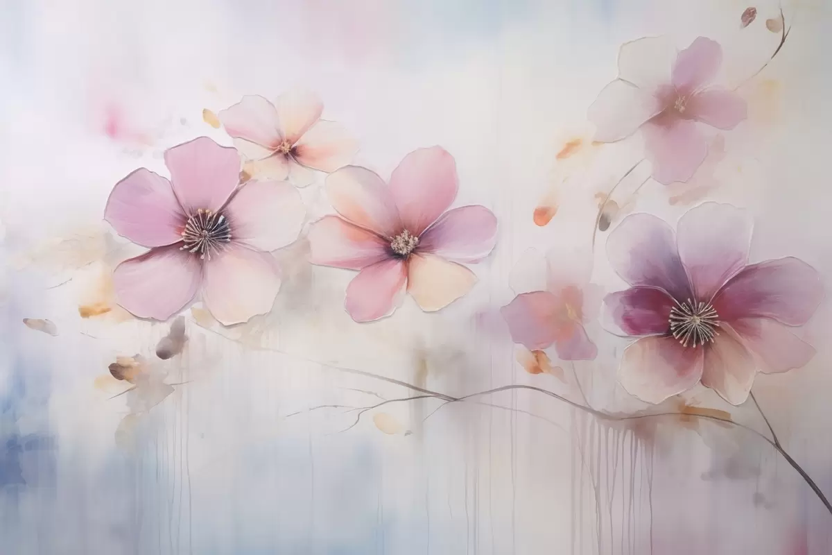 Фотошпалери Гілка з рожевими квітами в стилі акварелі w09522