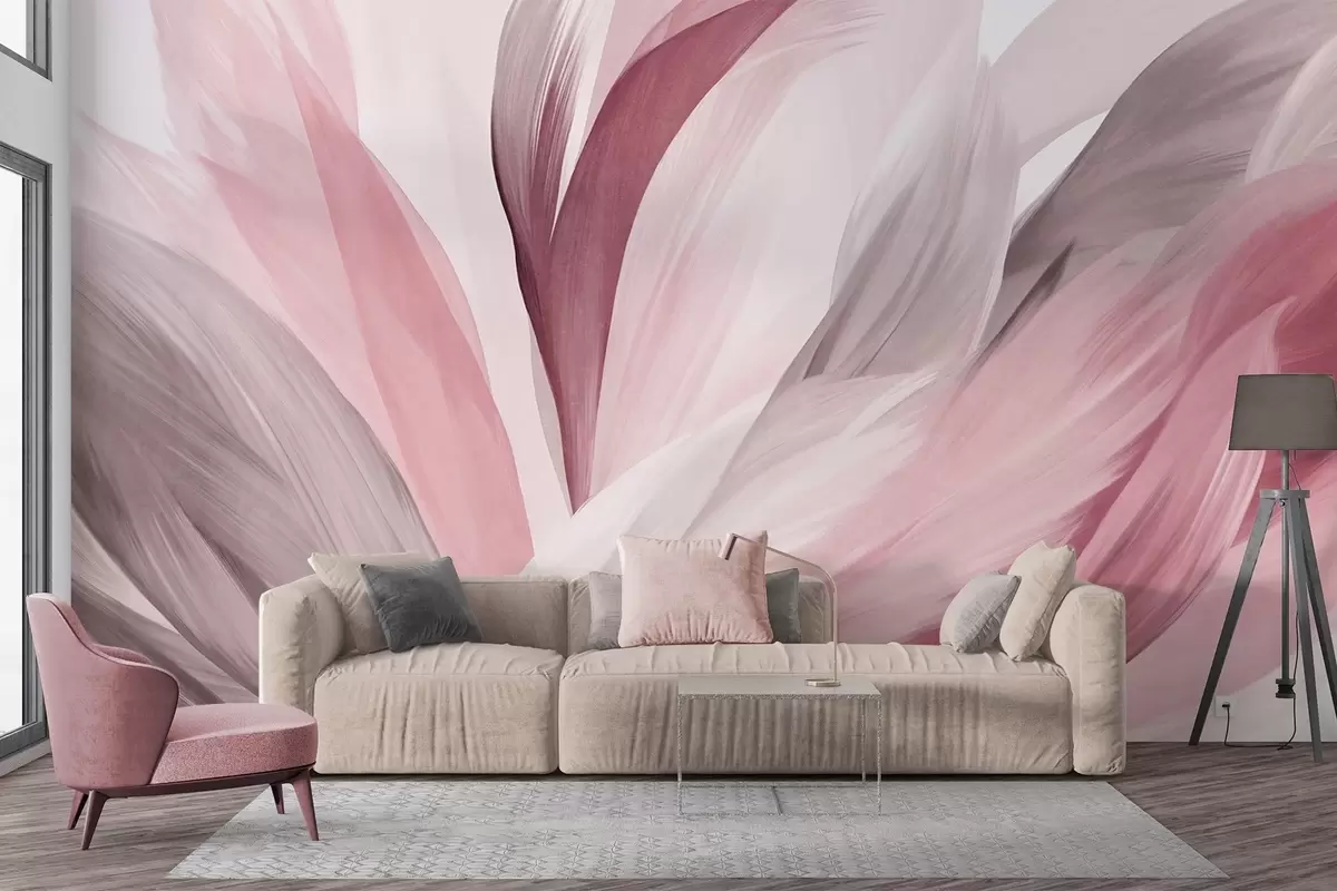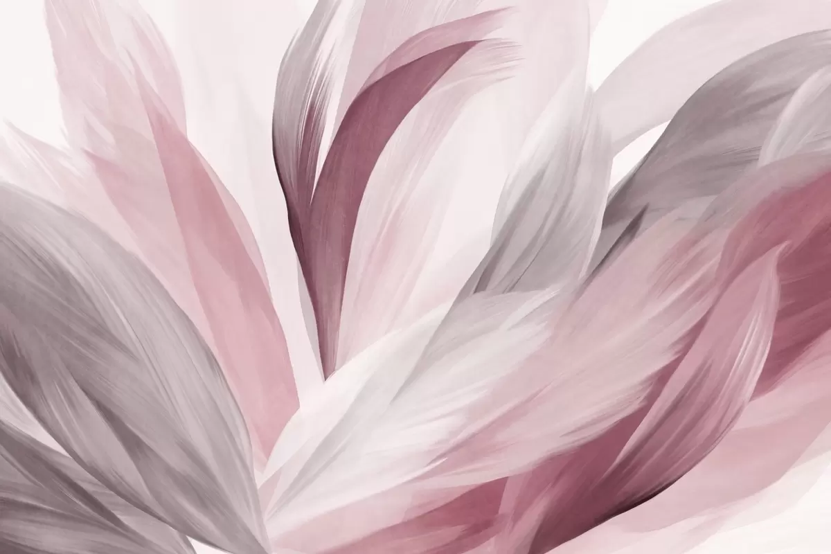 Фотошпалери Абстрактні текстуровані пір'я в рожевому, білому, сірому та різних відтінках, що перекриваються на білому тлі w09531v2