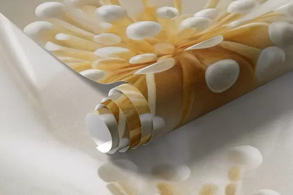 Фотошпалери Білі квіти з перлами, розсипані на білому тлі, елегантний і мінімалістичний дизайн, текстурований w09535