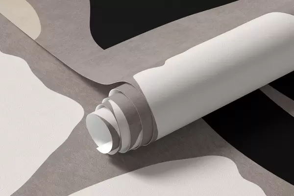Фотошпалери Сучасні мінімалістичні стилізовані квіти та листя в бежевому, чорному та білому кольорах, текстуровані на сірому тлі w09547