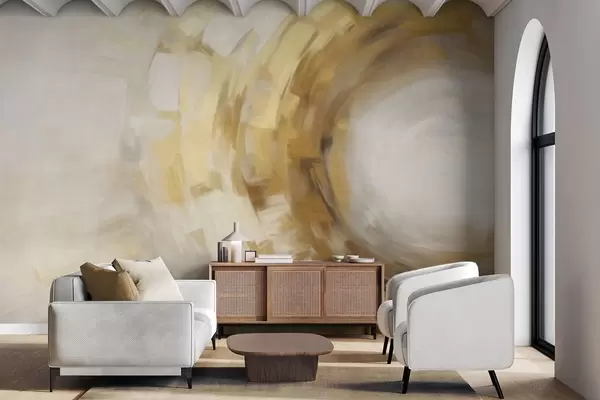 Фотошпалери Абстрактна імітація живопису з круглими текстурними мазками жовтого і білого кольорів, що створюють відчуття руху w09558