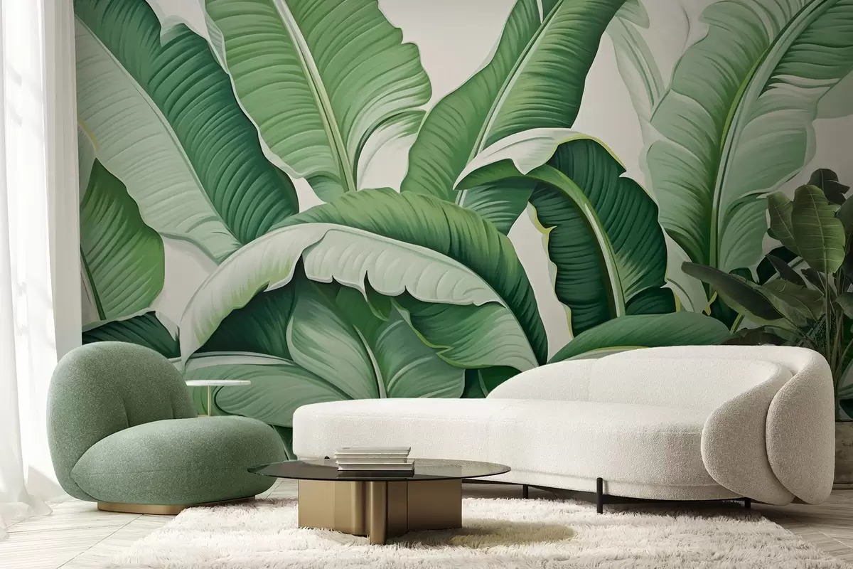 Фотошпалери Зелені тропічні бананові листя з 3D-ефектом w09559
