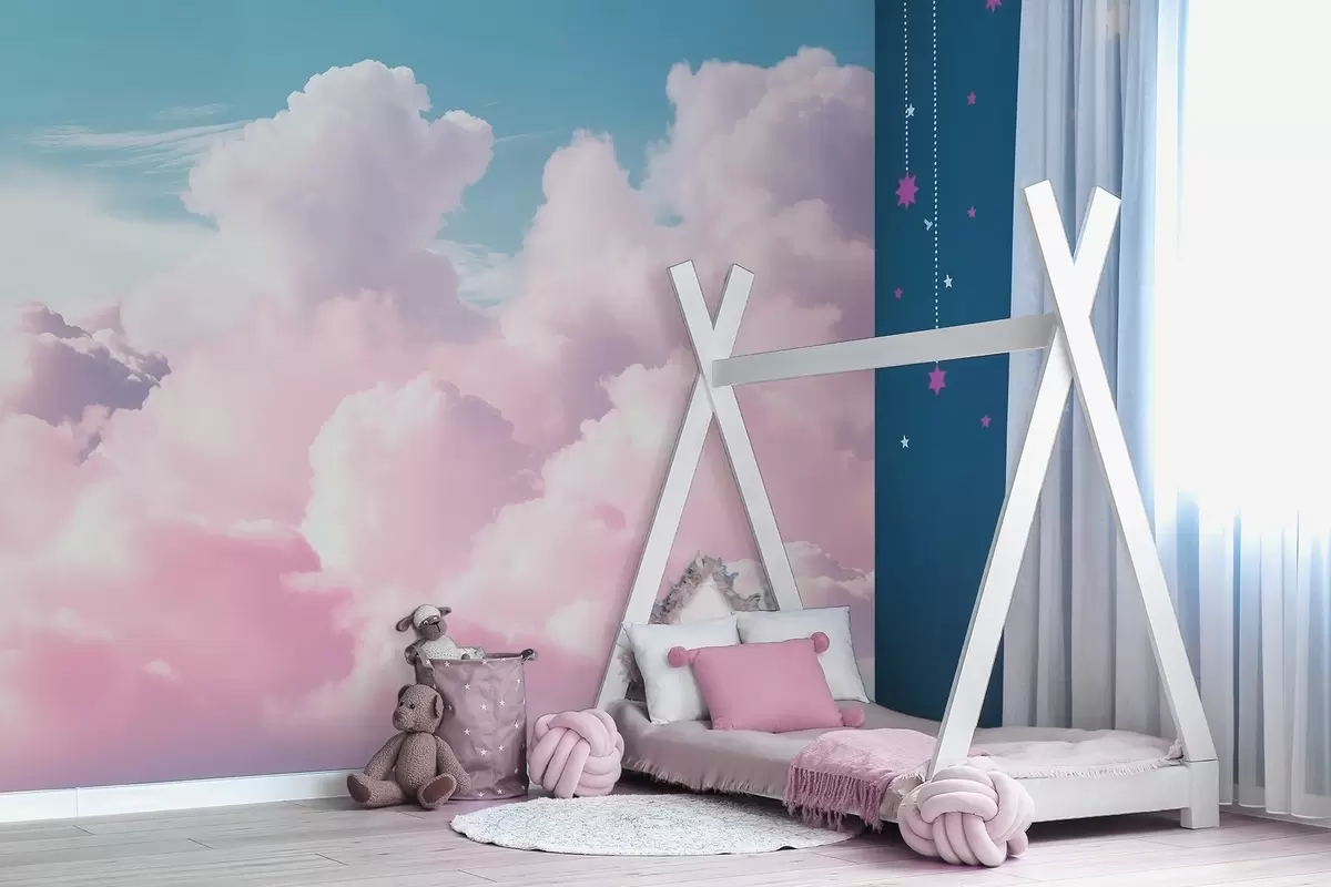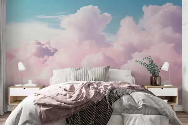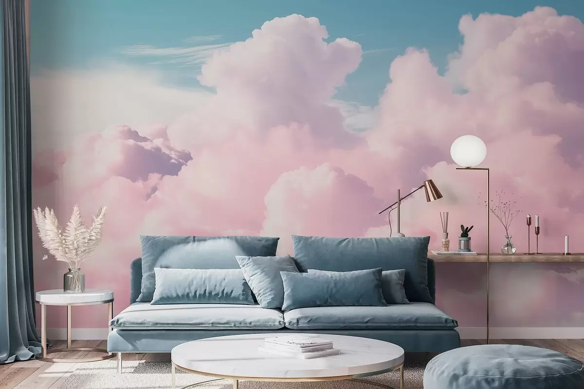 Фотошпалери М'які повітряні рожеві хмари на блакитному небі w09569