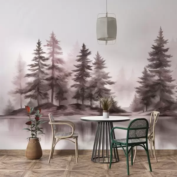 Фотошпалери Текстурований туманний ліс з високими соснами, імітація живопису w09610v1