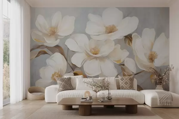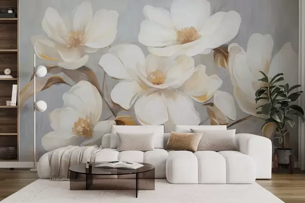 Фотошпалери Текстурована імітація кількох білих квітів магнолії на приглушеному пастельному тлі w09612