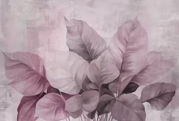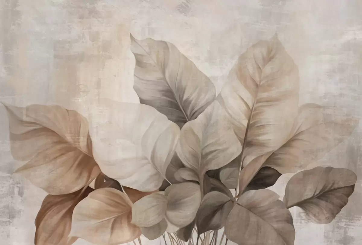 Фотошпалери Текстуроване малювання імітації великих світло-коричневих листя на нейтральному тлі з тонким мазком пензля w09614