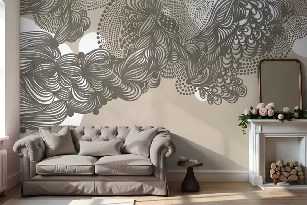Фотошпалери Абстрактний текстурований дизайн на бежевому тлі, з витонченими лініями та крапчастими текстурами. w09621
