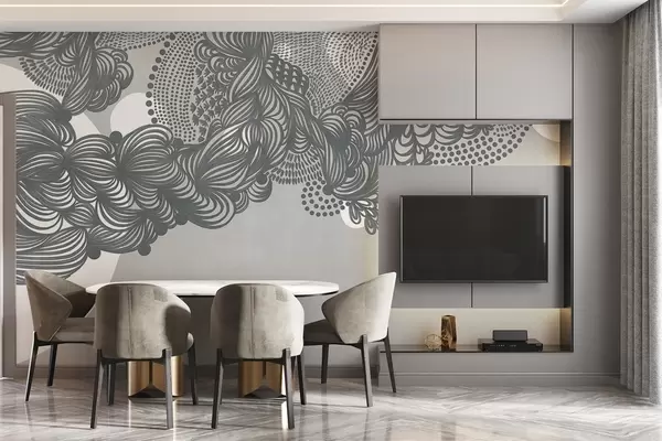Фотошпалери Абстрактний текстурований дизайн на сірому тлі, зі складними лініями та крапчастими текстурами w09621v1
