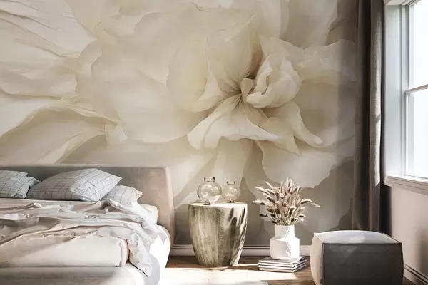 Фотошпалери Текстурована ніжна квітка світлого кольору з напівпрозорими пелюстками, м'який абстрактний фон w09632