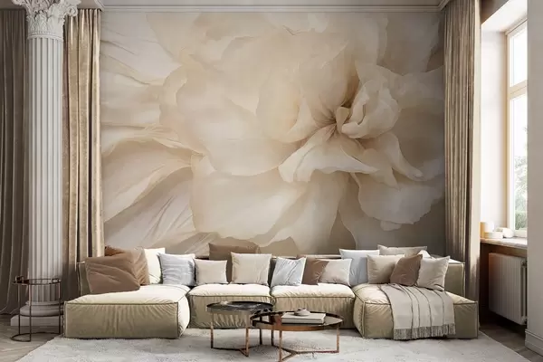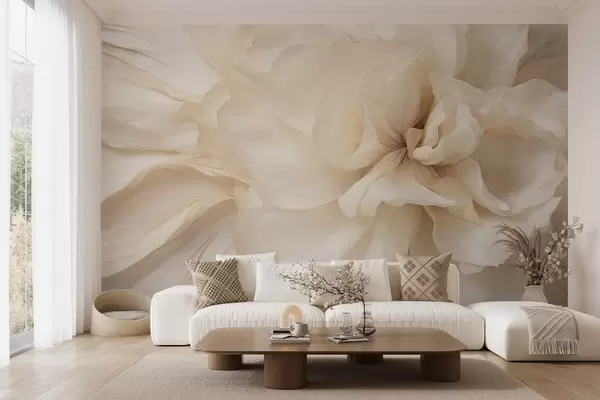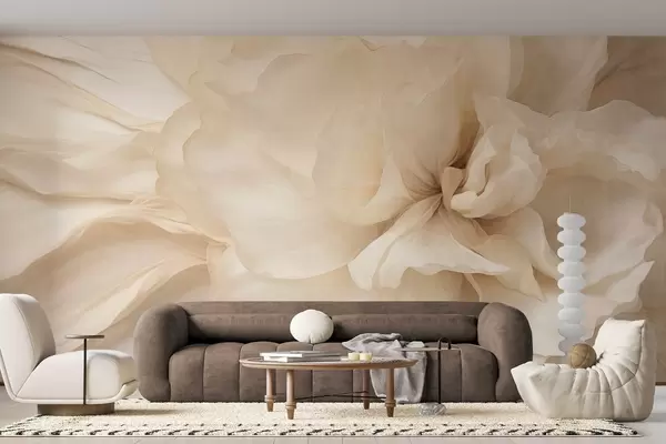 Фотошпалери Текстурована ніжна квітка світлого кольору з напівпрозорими пелюстками, м'який абстрактний фон w09632