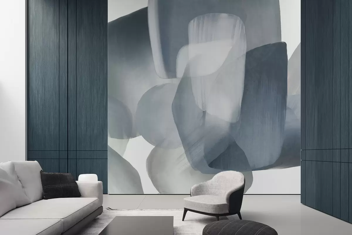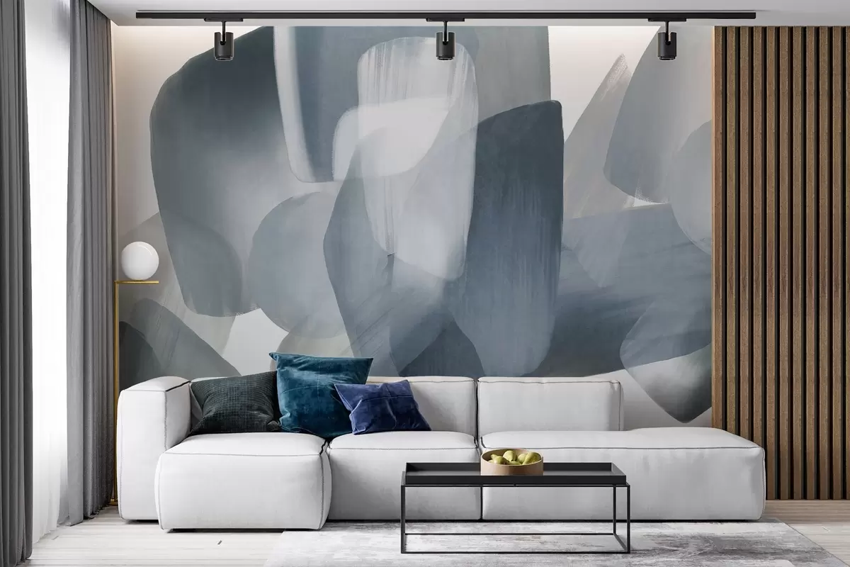 Фотошпалери Абстрактні текстуровані фігури в приглушених синіх і сірих кольорах, з м'якими краями і перекриваючимися шарами w09642v1