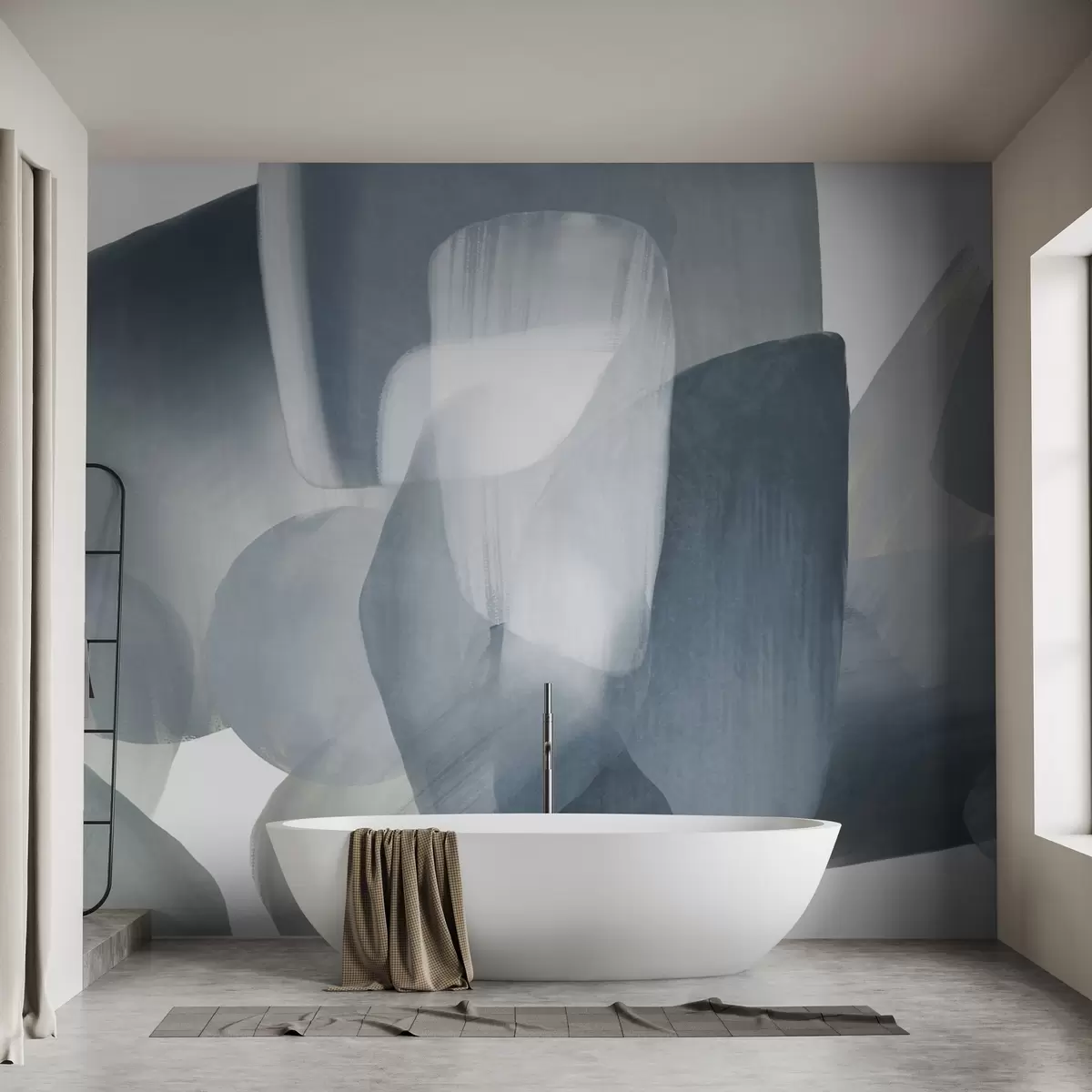 Фотошпалери Абстрактні текстуровані фігури в приглушених синіх і сірих кольорах, з м'якими краями і перекриваючимися шарами w09642v1