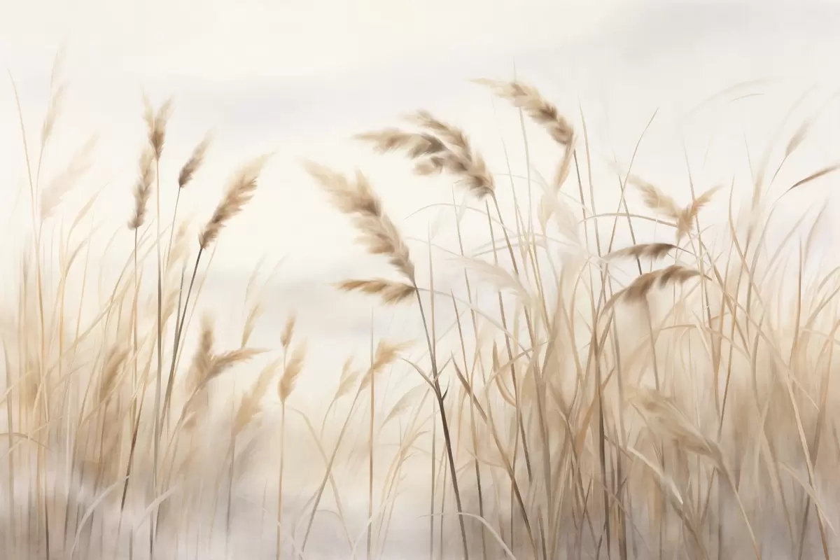 Фотошпалери Висока, текстурована суха трава з колосками пшениці на полі на тлі м'якого, блідого фону w09648
