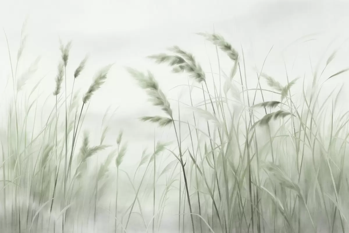 Фотошпалери Висока, текстурована суха трава з колосками пшениці на полі на тлі м'якого, блідого фону w09648v1