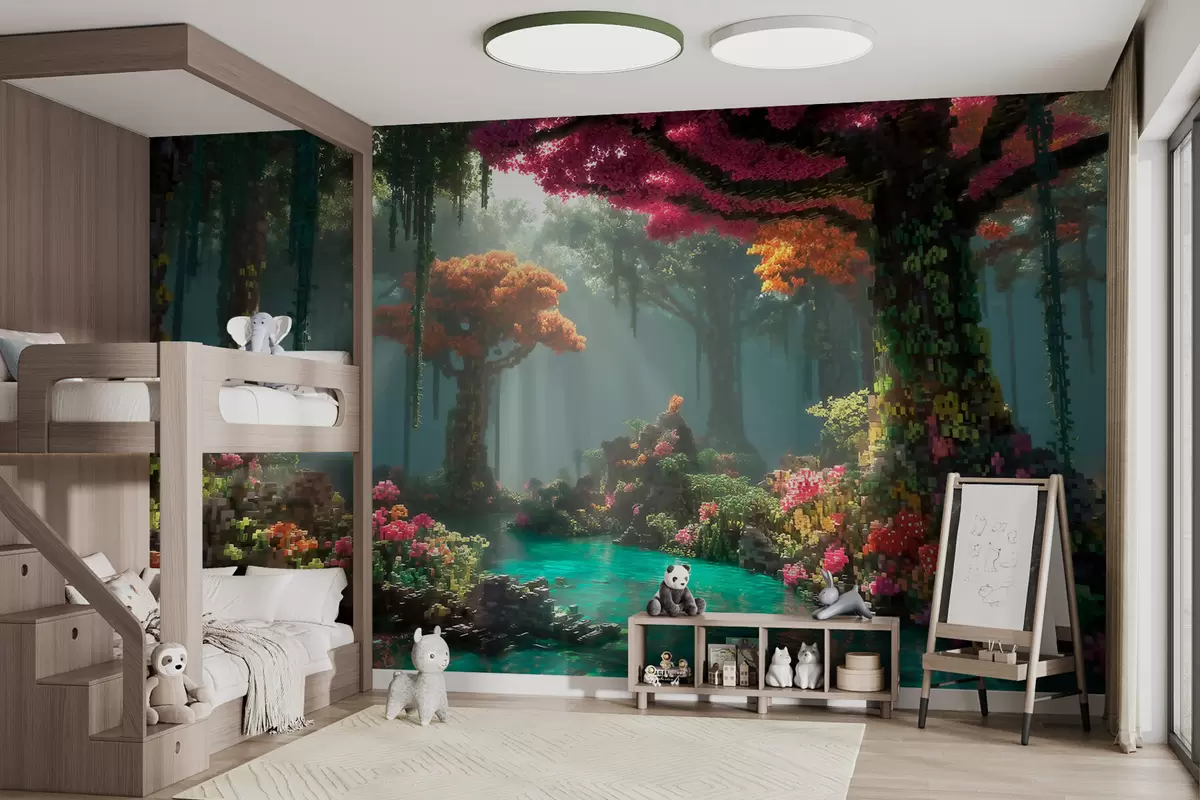 Фотошпалери Зачарований ліс у стилі «Pixel», натхненний відеоіграми w09683