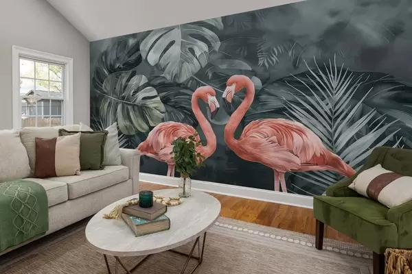 Фотошпалери Пара фламінго серед тропічних рослин w09687