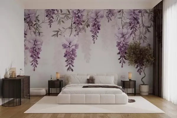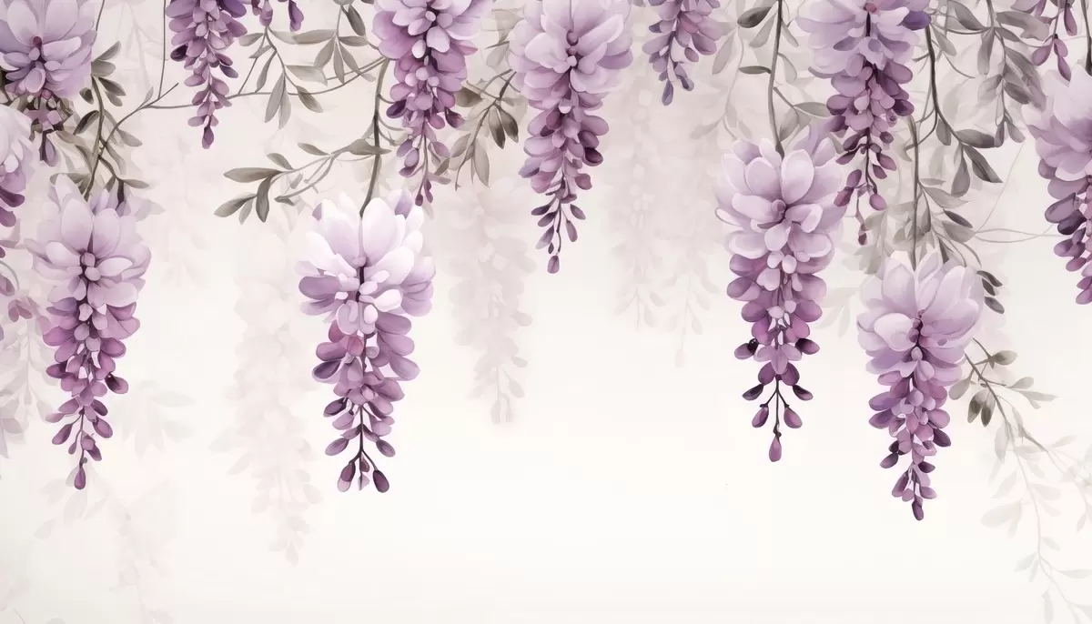 Фотошпалери Делікатні, великі гілки лаванди, що висять на стіні, імітація акварелі w09690