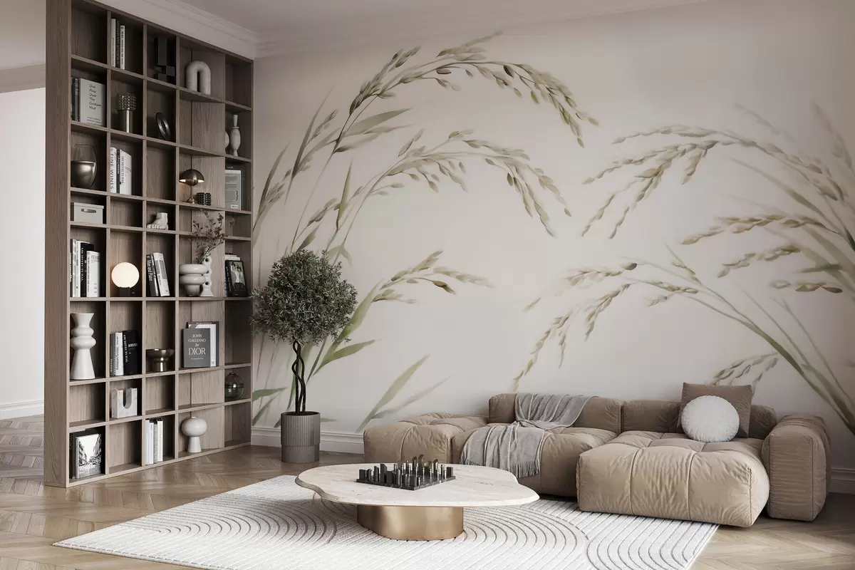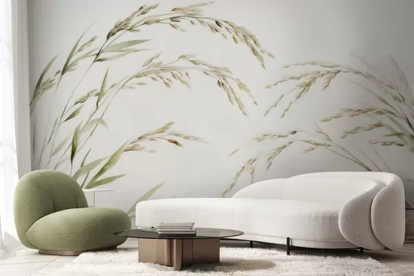 Фотошпалери Ніжні злакові трави в пастельних тонах з м'яким акварельним ефектом w09712