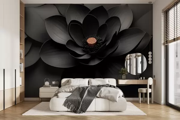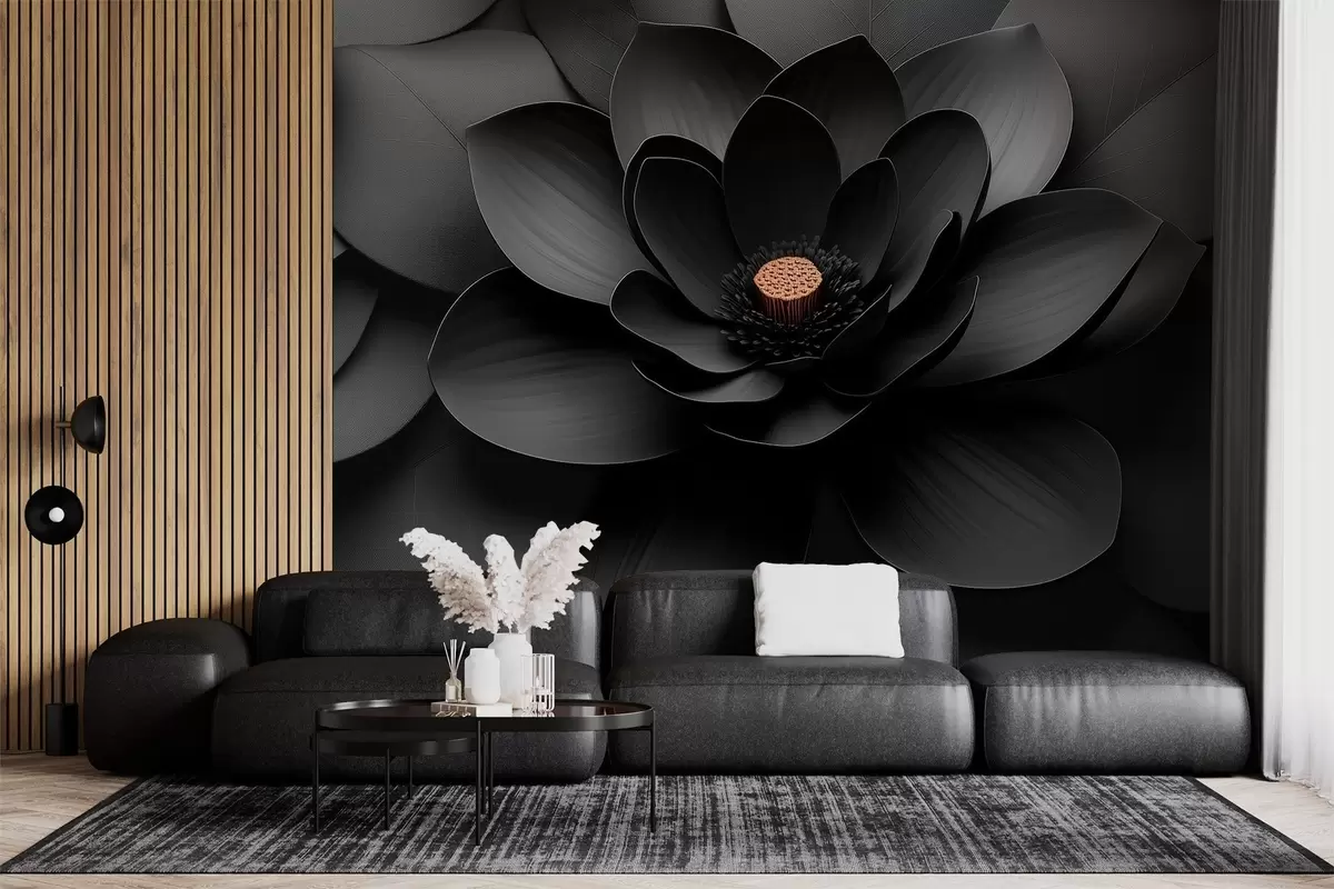 Фотошпалери Мінімалістична чорна квітка з пелюстками та контрастною теплою серединкою w09721