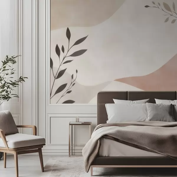 Фотошпалери Абстрактні бежево-персикові хвилі з гілками w09722