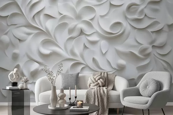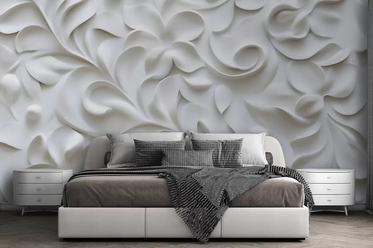 Фотошпалери Сірий об'ємний квітковий орнамент w09727