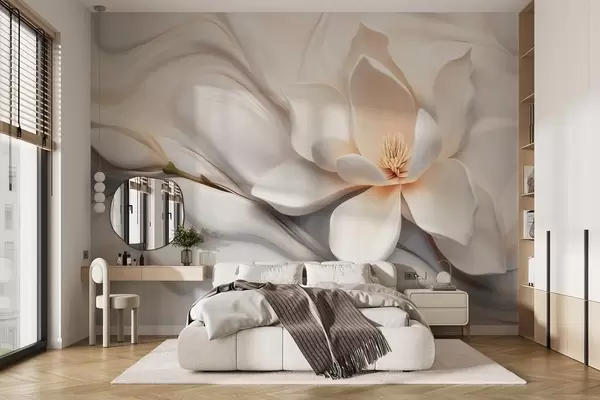 Фотошпалери Тривимірна біла магнолія з імітацією мармурової текстури в рельєфі w09729