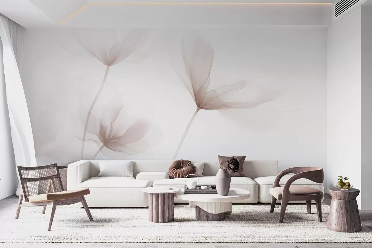 Фотошпалери Легкі бежеві квіти в мінімалістичному світлому стилі w09734