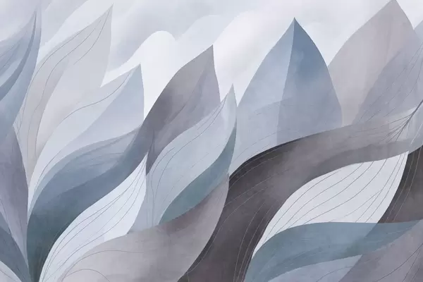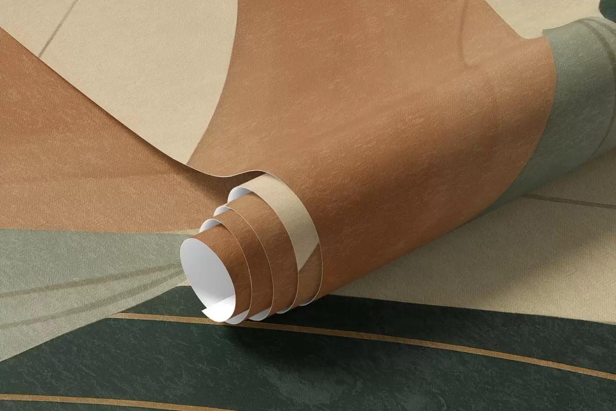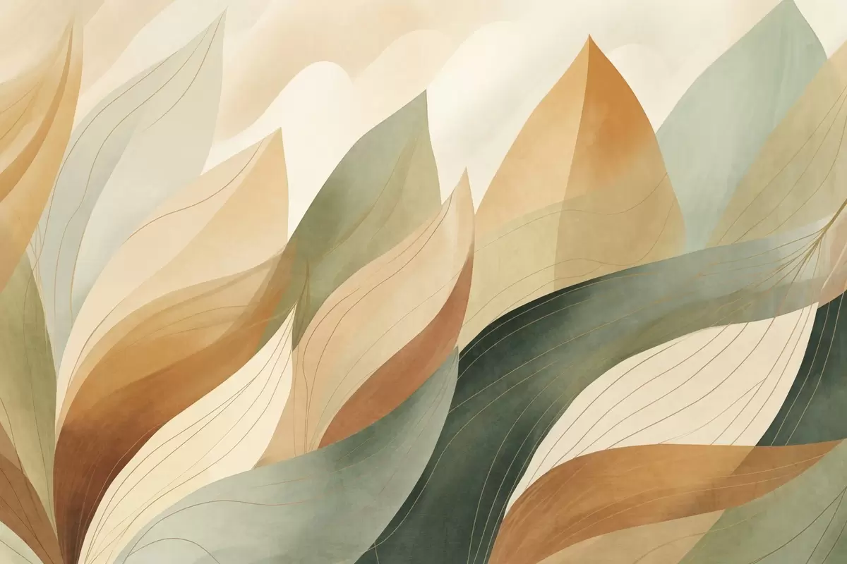 Фотошпалери Абстрактні листя, приглушені землисті відтінки зеленого, помаранчевого з ніжними лінійними деталями, м'яка акварельна текстура w09736