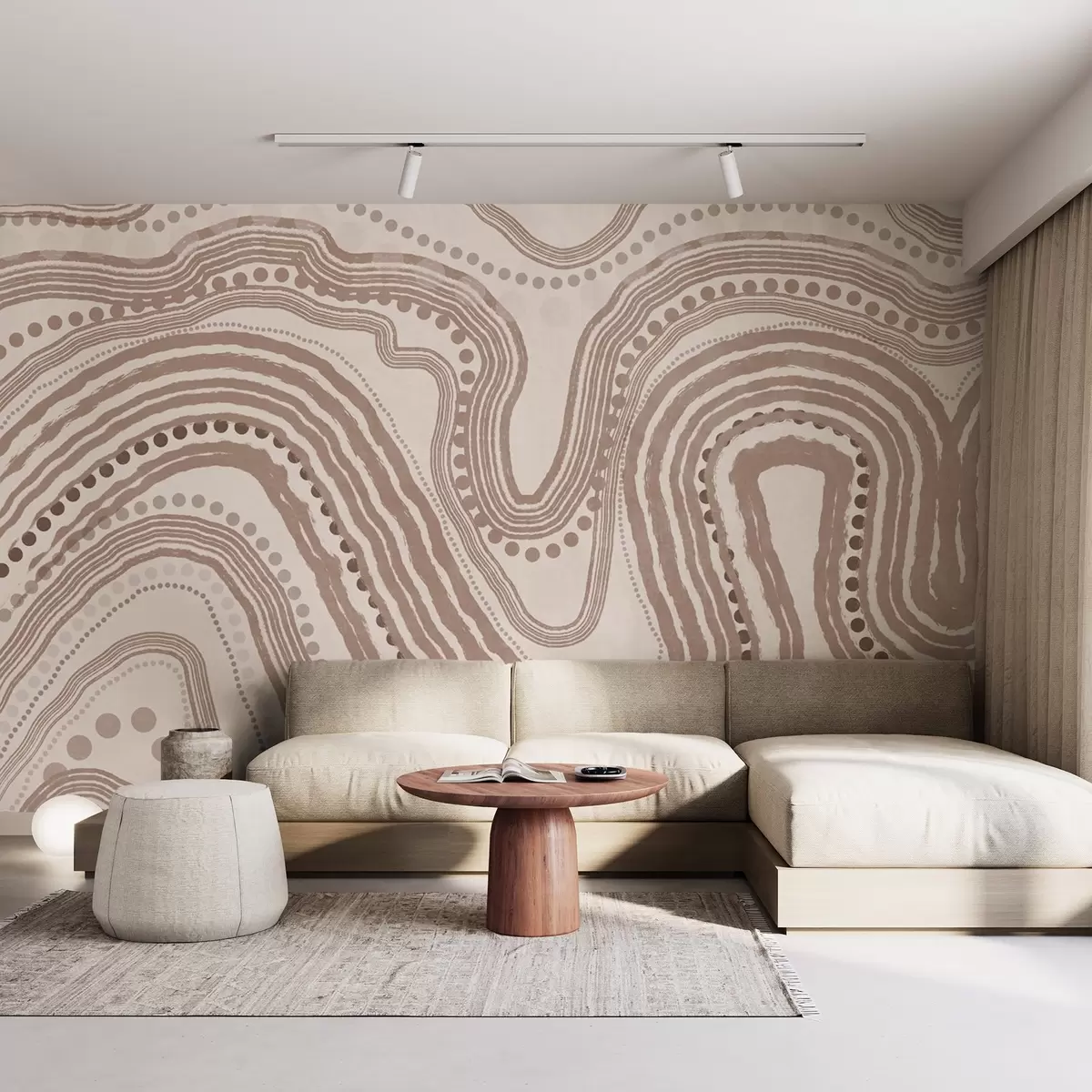 Фотошпалери Абстрактні коричневі та бежеві хвилясті лінії та крапки, сучасне текстуроване мистецтво w09747v1