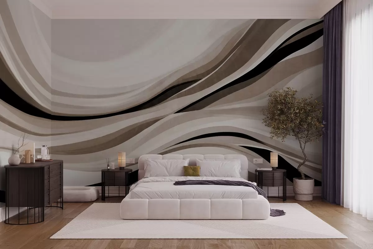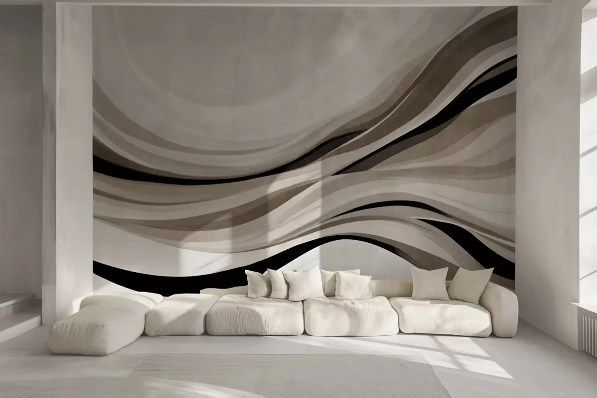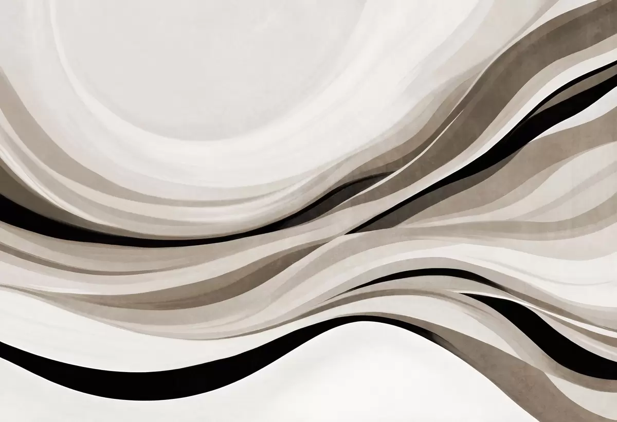 Фотошпалери Абстрактні хвилясті лінії в бежевих і чорних відтінках на світлому тлі, фактурне мистецтво w09748