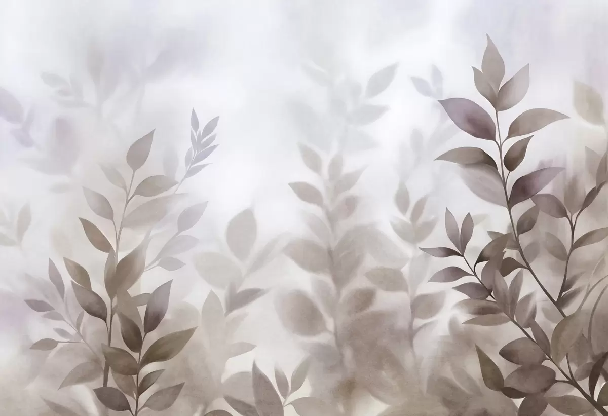 Фотошпалери Делікатні гілки з приглушеними коричневими та бежевими листям, стиль акварельного живопису, фактурне мистецтво w09750