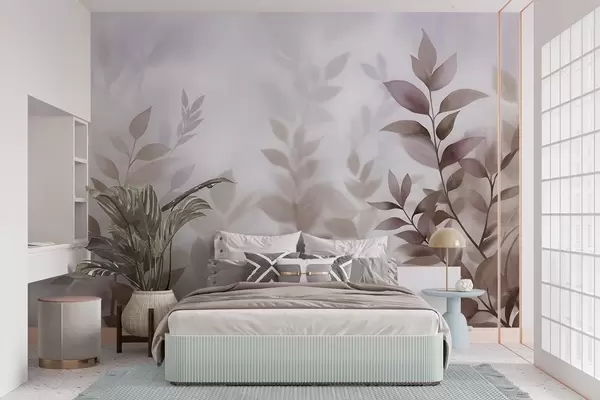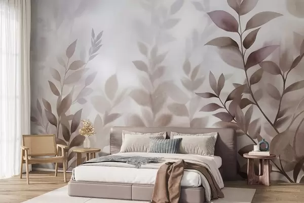 Фотошпалери Делікатні гілки з приглушеними коричневими та бежевими листям, стиль акварельного живопису, фактурне мистецтво w09750