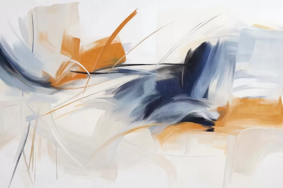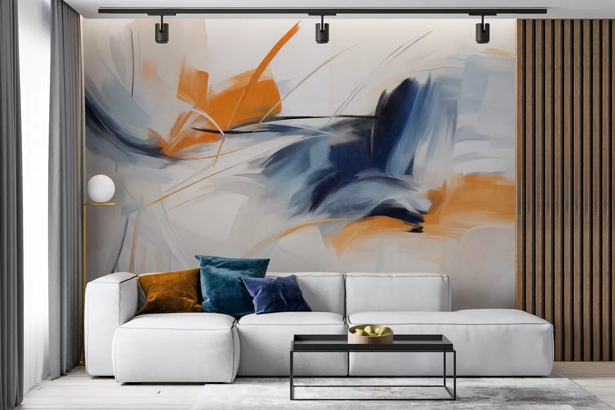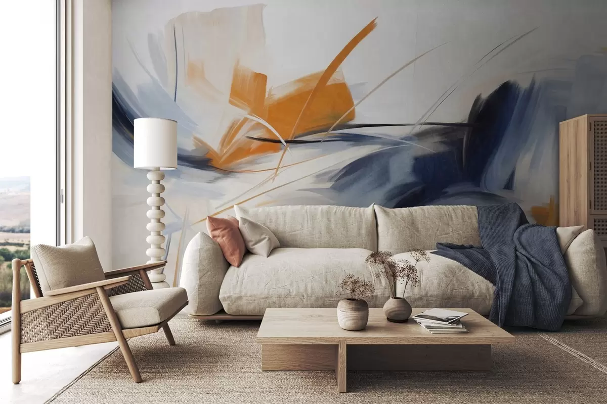 Фотошпалери Абстрактний стиль живопису з помаранчевими та синіми текстурними мазками w09755
