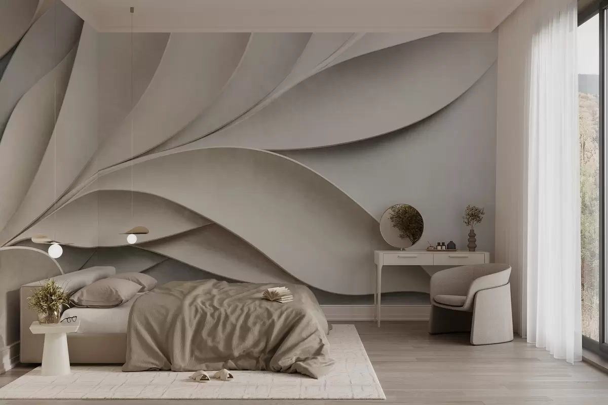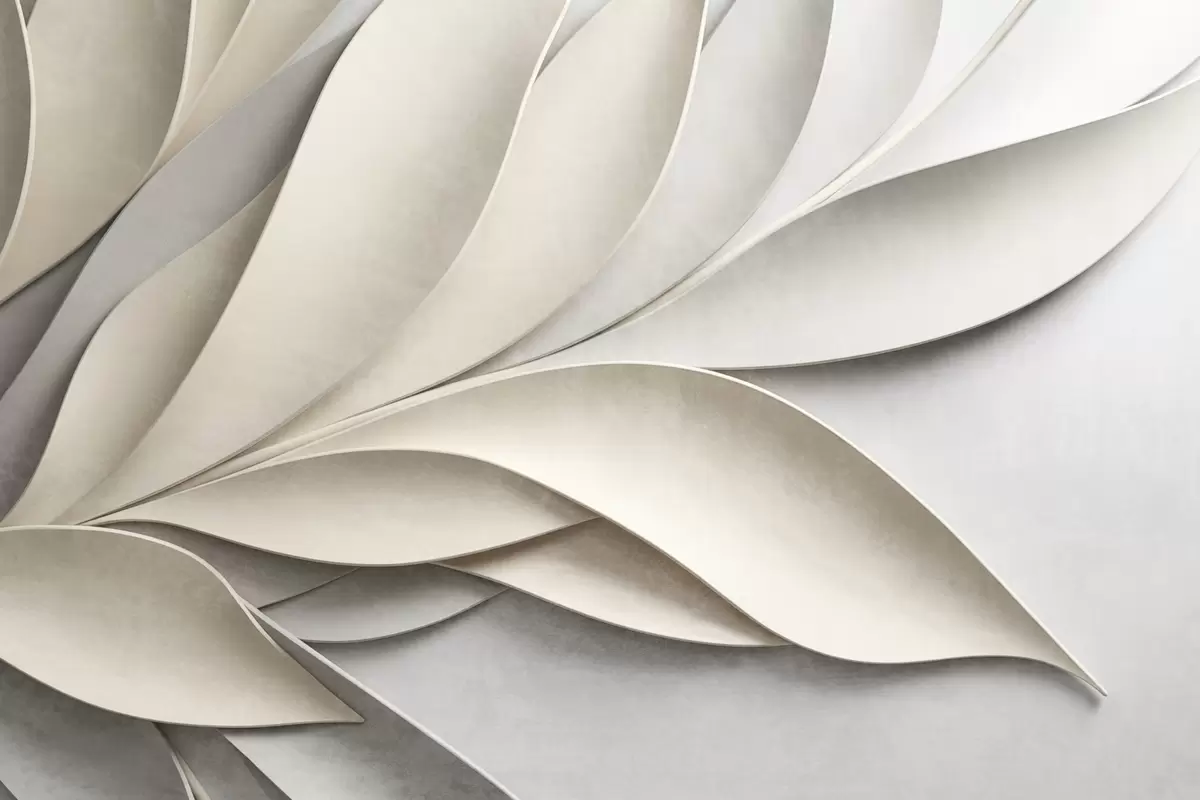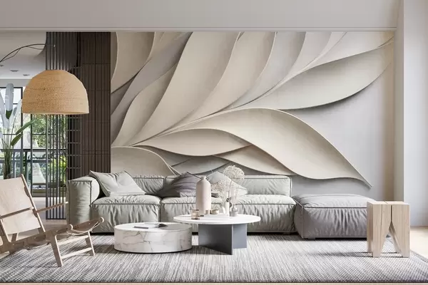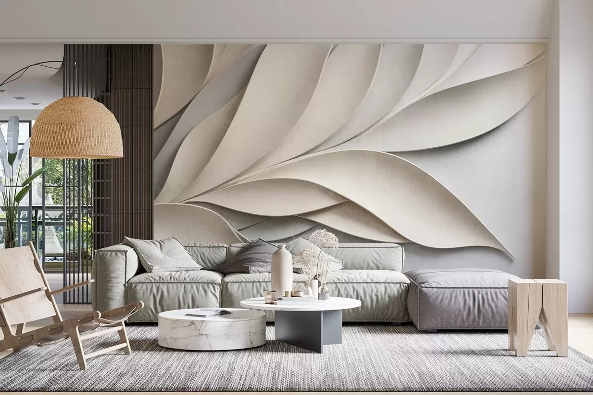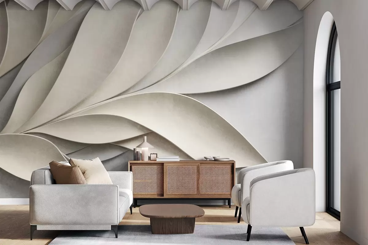 Фотошпалери Абстрактні листя в бежевому та сірому кольорах, фактурне сучасне мистецтво w09769