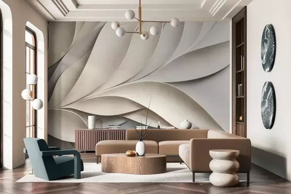 Фотошпалери Абстрактні листя в бежевому та сірому кольорах, фактурне сучасне мистецтво w09769