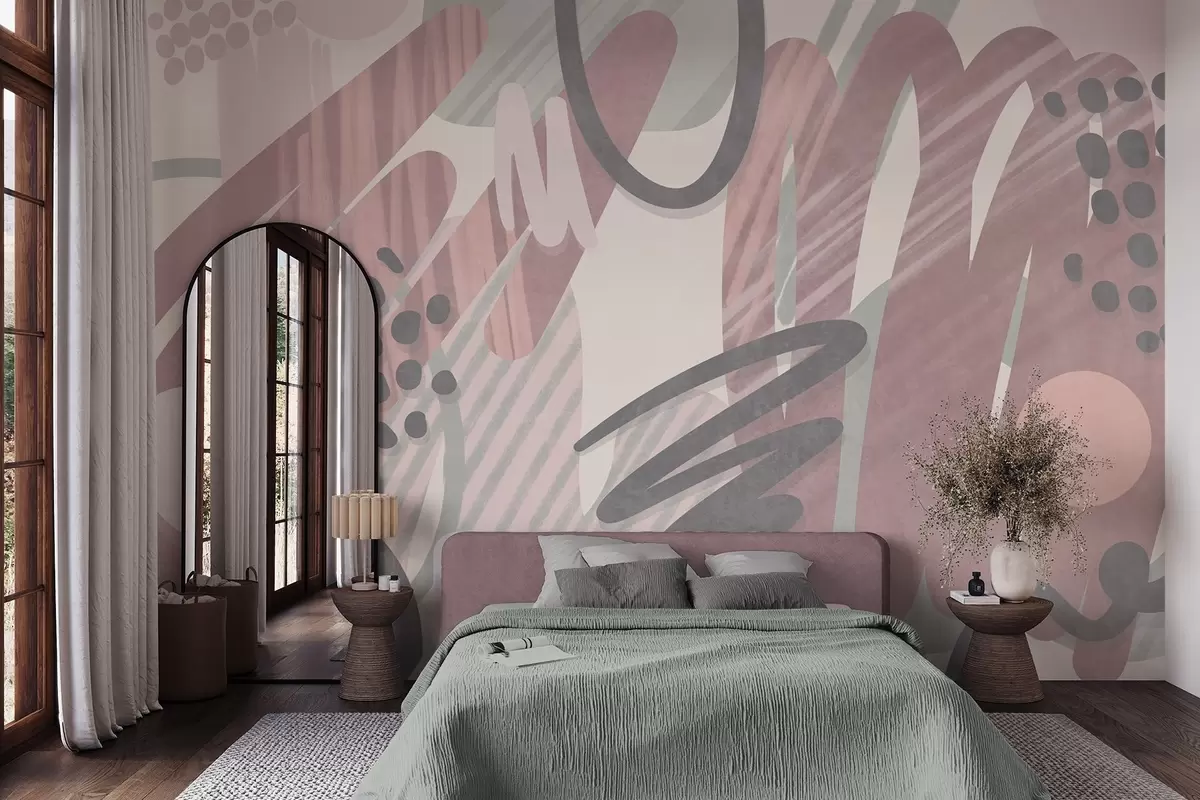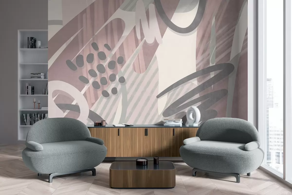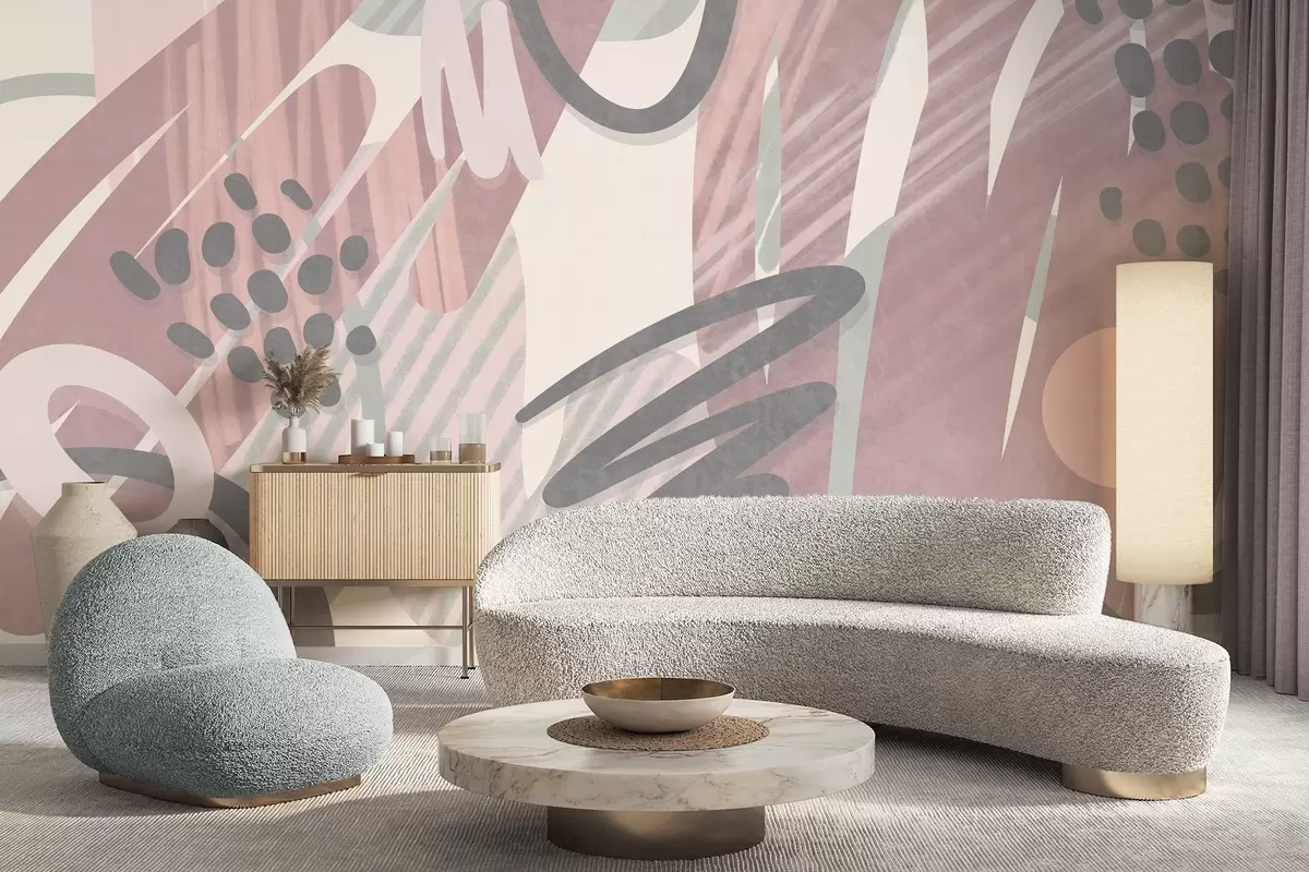 Фотошпалери Абстрактний фактурний принт з органічними формами, мазками та крапками у приглушених пастельних тонах w09774v1