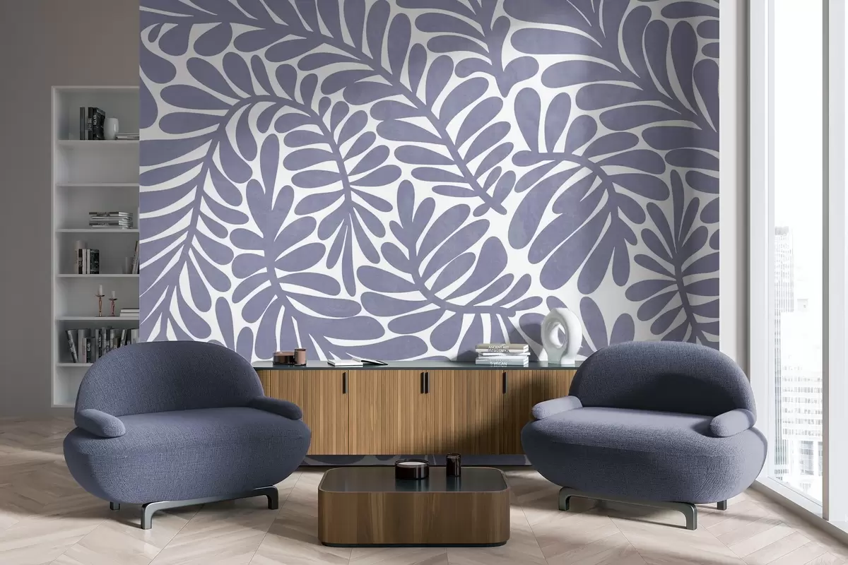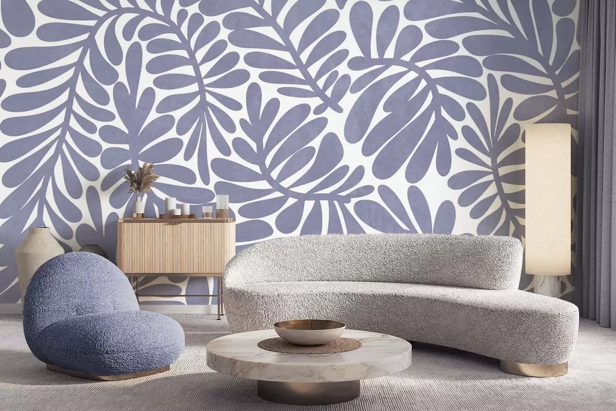 Фотошпалери Стилізовані світло-блакитні листки на світлому тлі, текстурована ілюстрація w09775v1