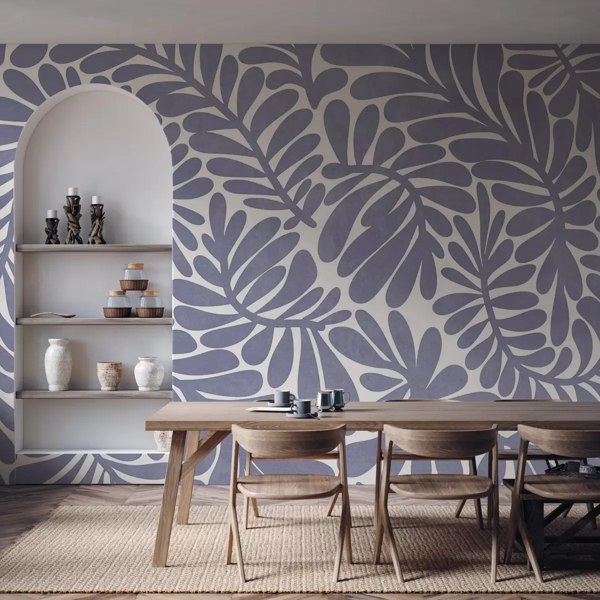 Фотошпалери Стилізовані світло-блакитні листки на світлому тлі, текстурована ілюстрація w09775v1