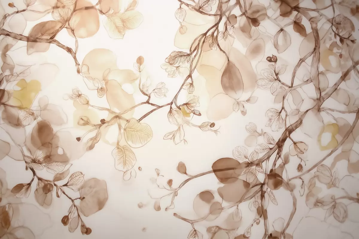 Фотошпалери Легкі звисаючі гілки у бежевих тонах у стилі акварелі w09795