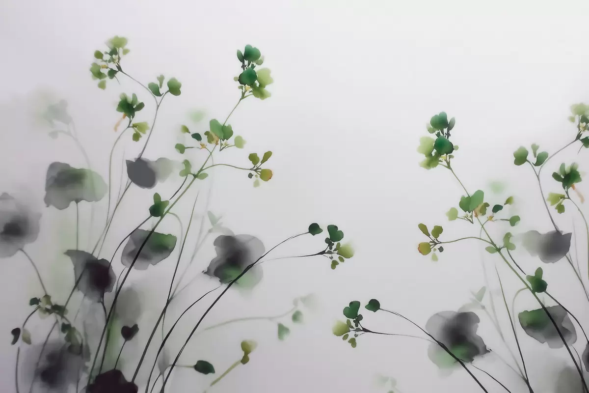 Фотошпалери Ніжні польові квіти та трава у стилі акварелі w09796