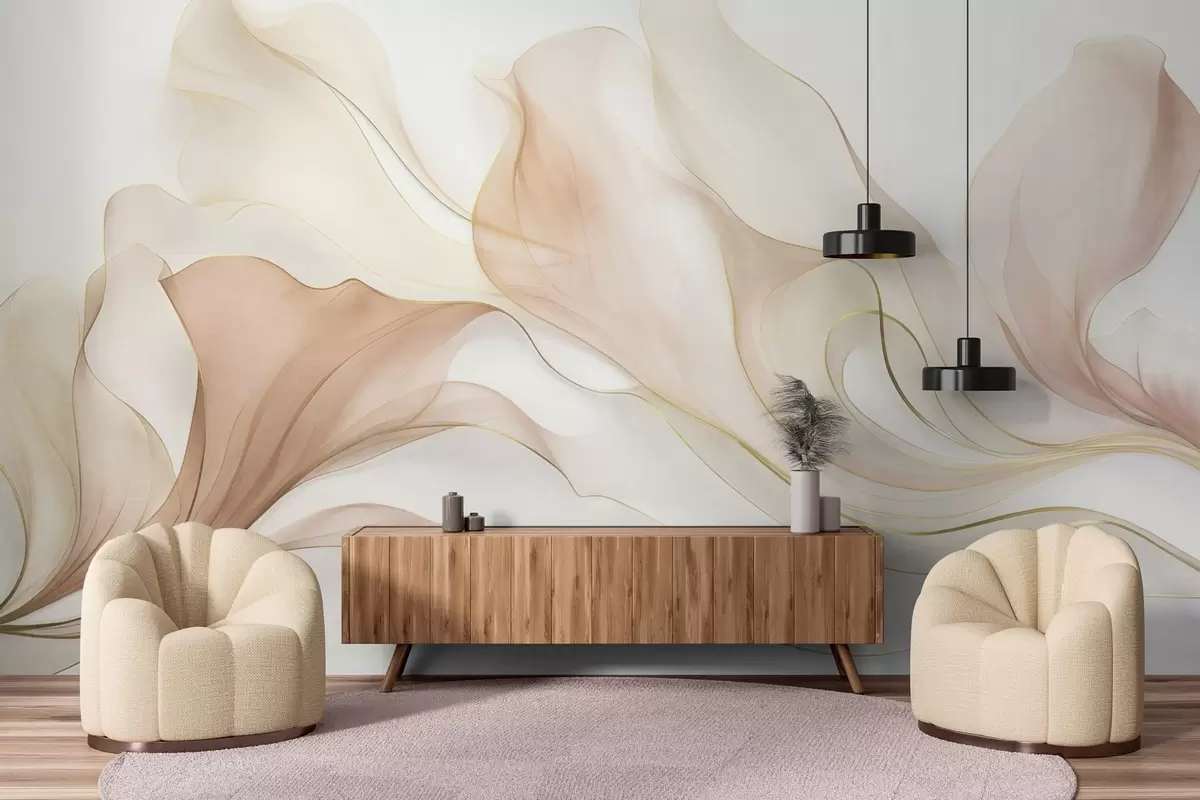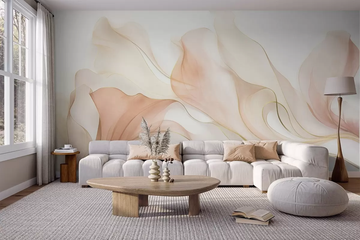 Фотошпалери Абстрактна плавна фактура у відтінках персикового та кремового кольорів з витонченими лініями w09815