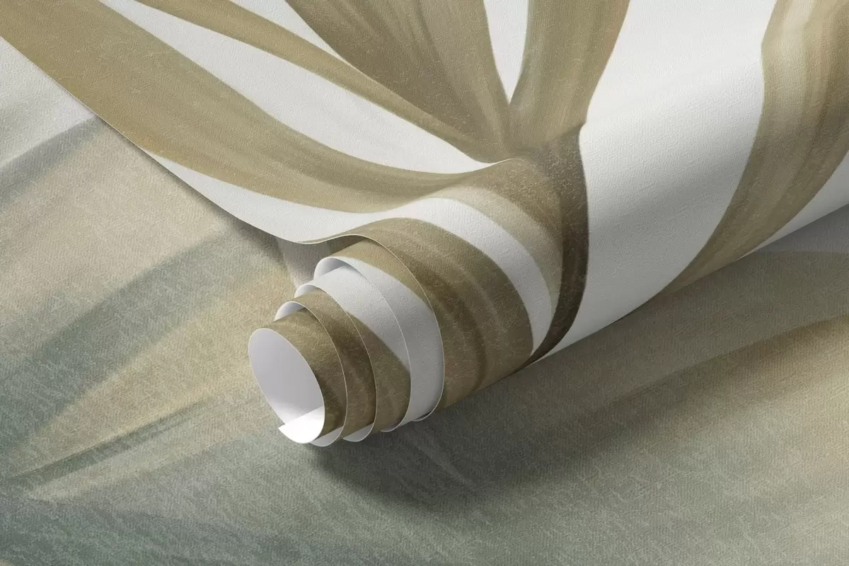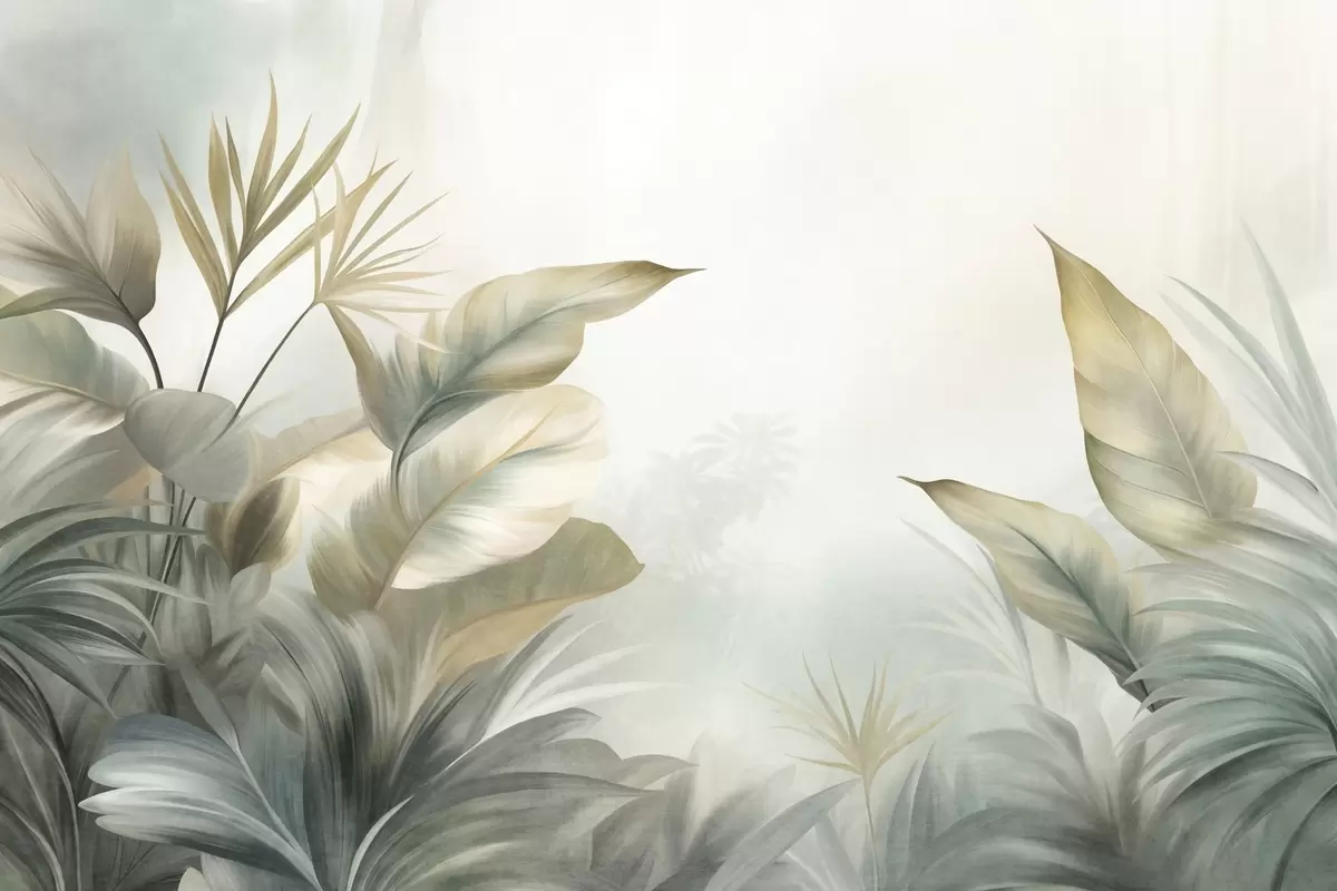 Фотошпалери Велике текстуроване тропічне листя в приглушених зелених і бежевих тонах, атмосфера джунглів w09820
