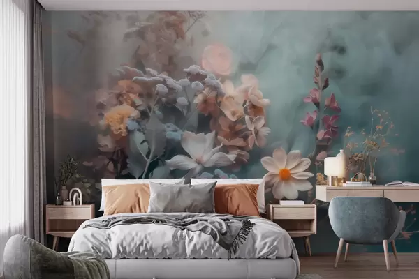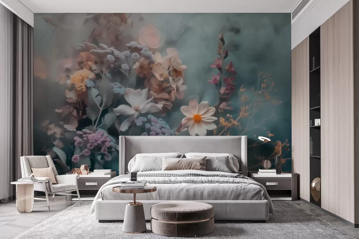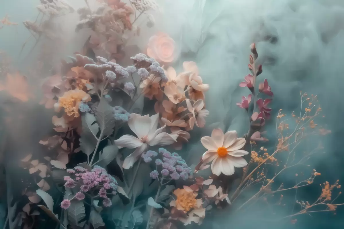 Фотошпалери Мрійлива композиція з польових квітів у легкій імлі пастельних відтінків w09846